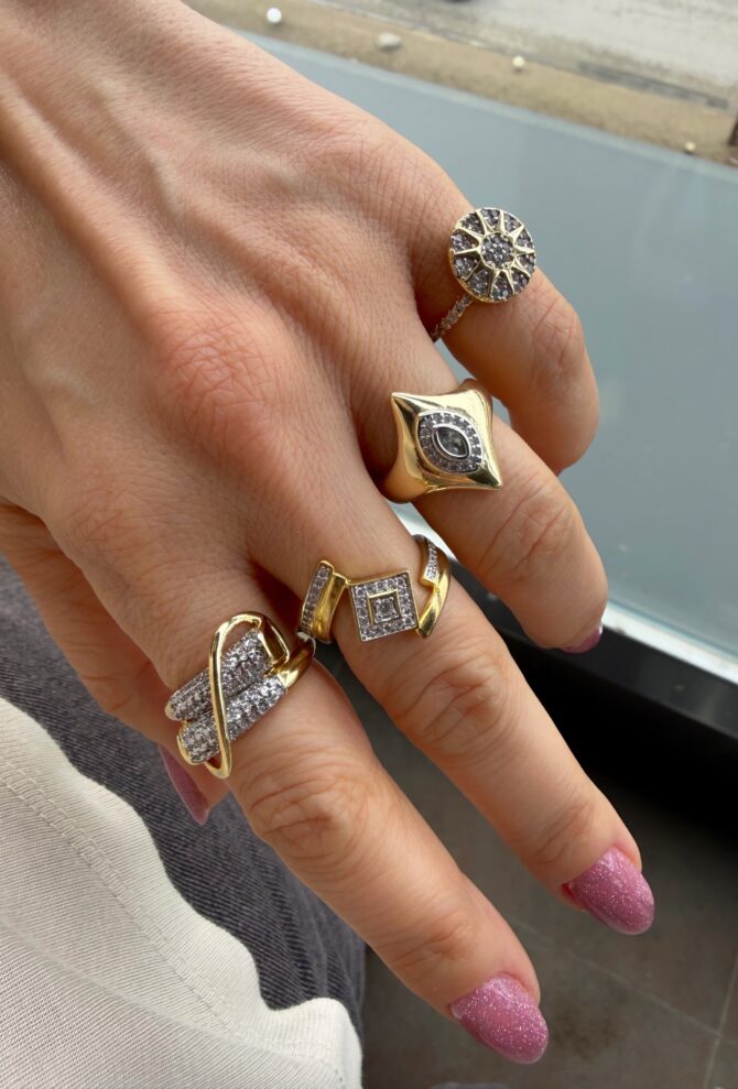 Gold Plaka Tasarım Ayarlı Yüzük Kombin