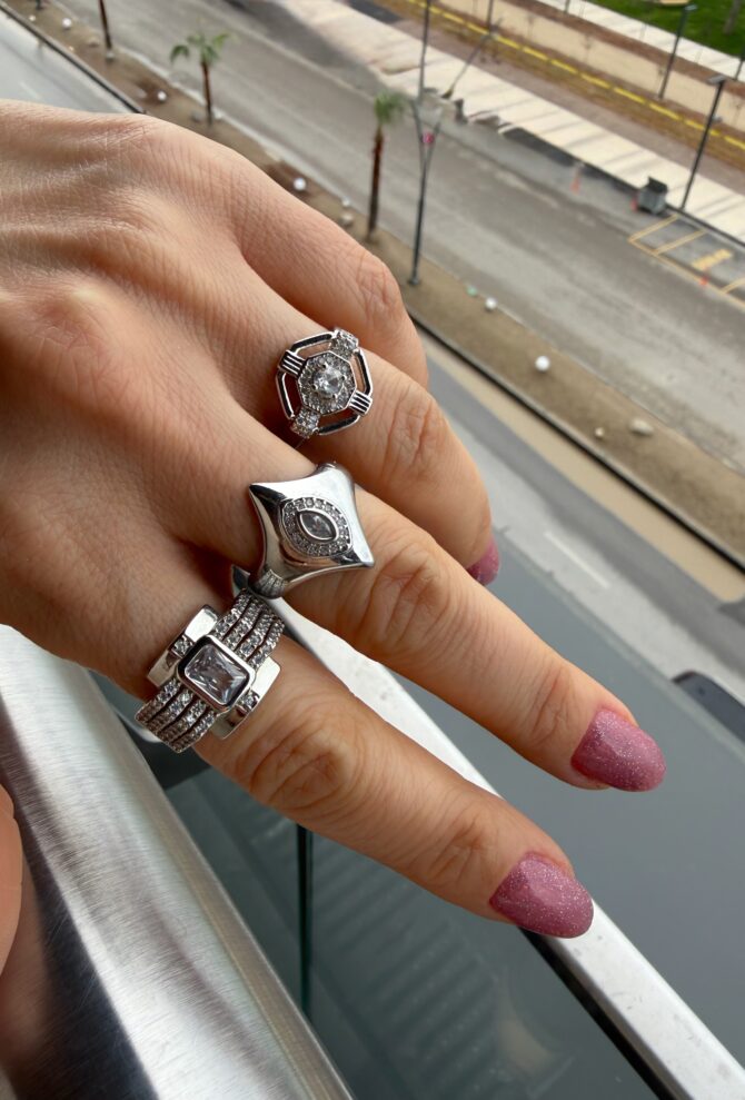Taşlı Ayarlı Gümüş Yüzük Kombin