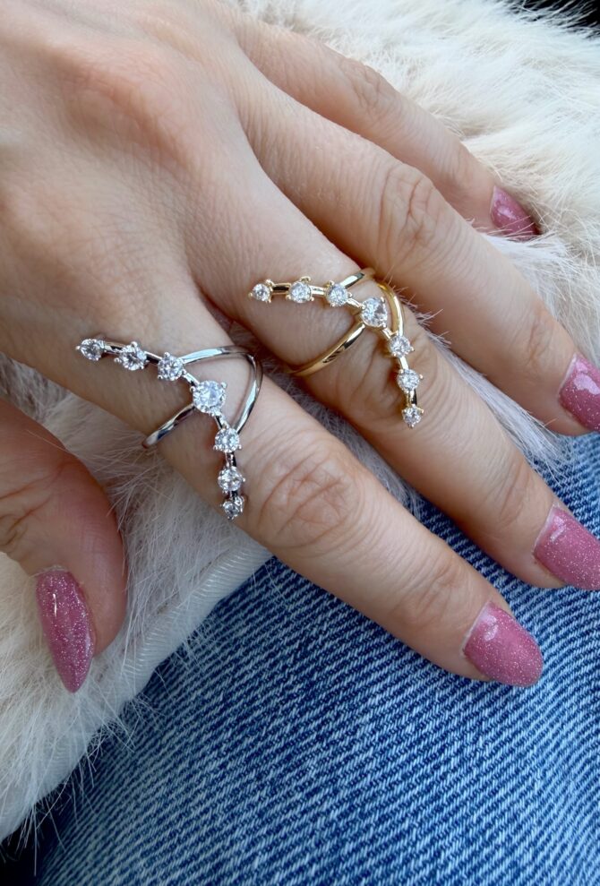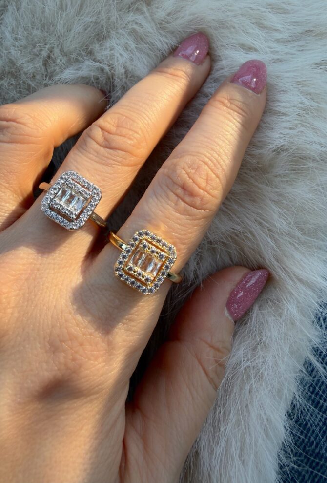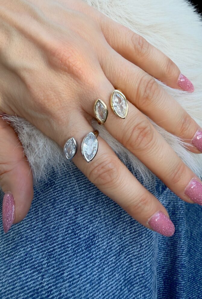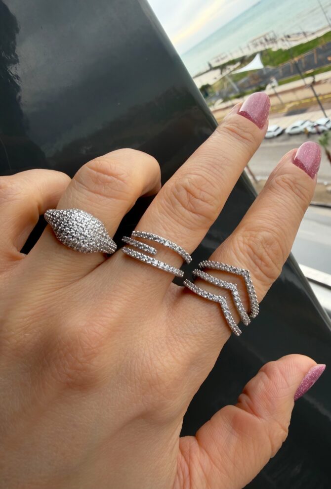 3 Sıra Taş Ortası Damla Yasarım Ayarlı Yüzük