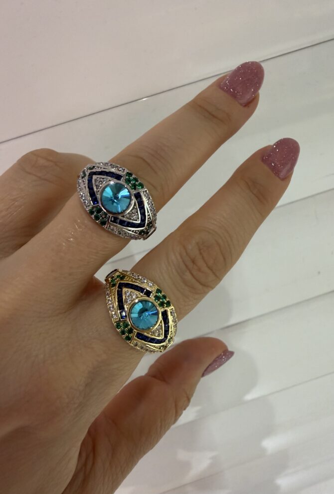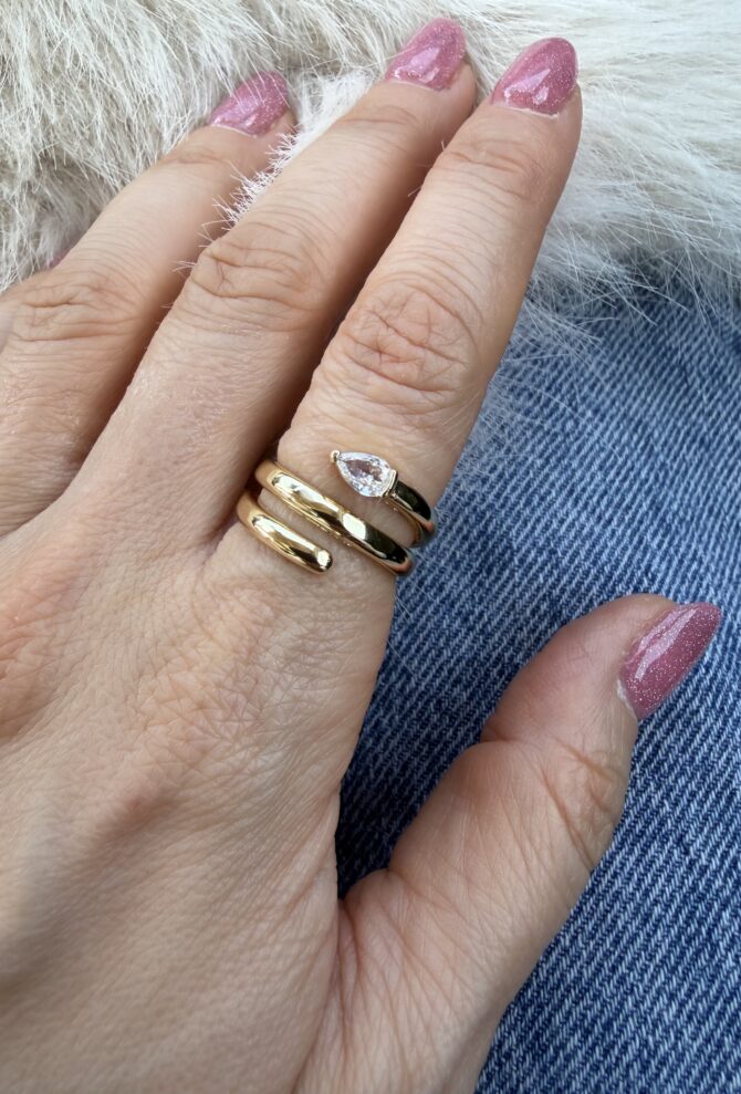 Plaka Ve Taş Sarmal Sıra Kristal Damla Yüzük