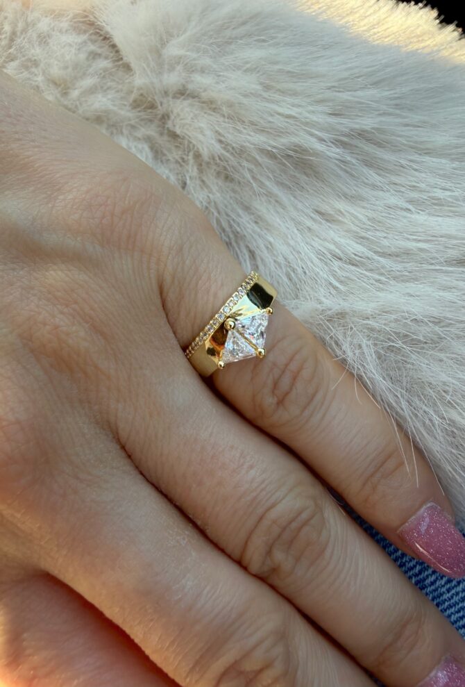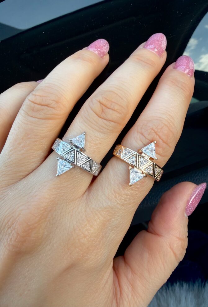 Üzeri Üçgen Desen Taşlı Ayarlı Yüzük
