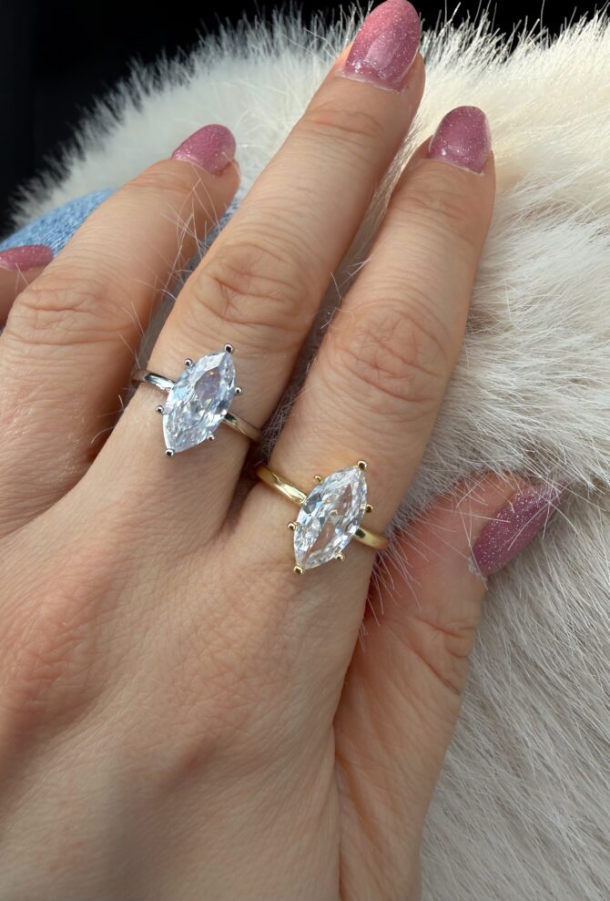 Kenarı Taş Oval Kesme İri Kristal Taş Yüzük