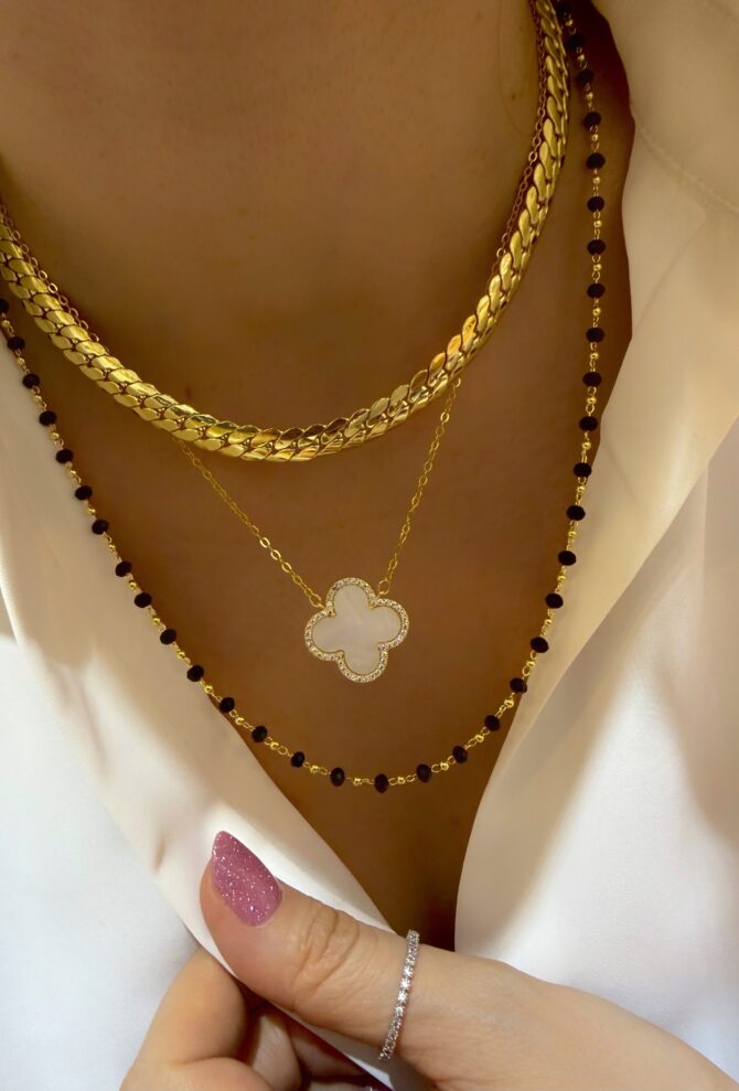 Beyaz Sedef Yıldız Top Kolye Kombin